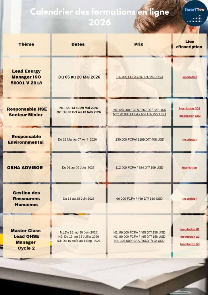 COTRATECH co-organise des formations en ligne dans les domaines de QHSE, ESG et autres, souvent en partenariat avec SMARTTEC, leader en formations en ligne en Afrique.